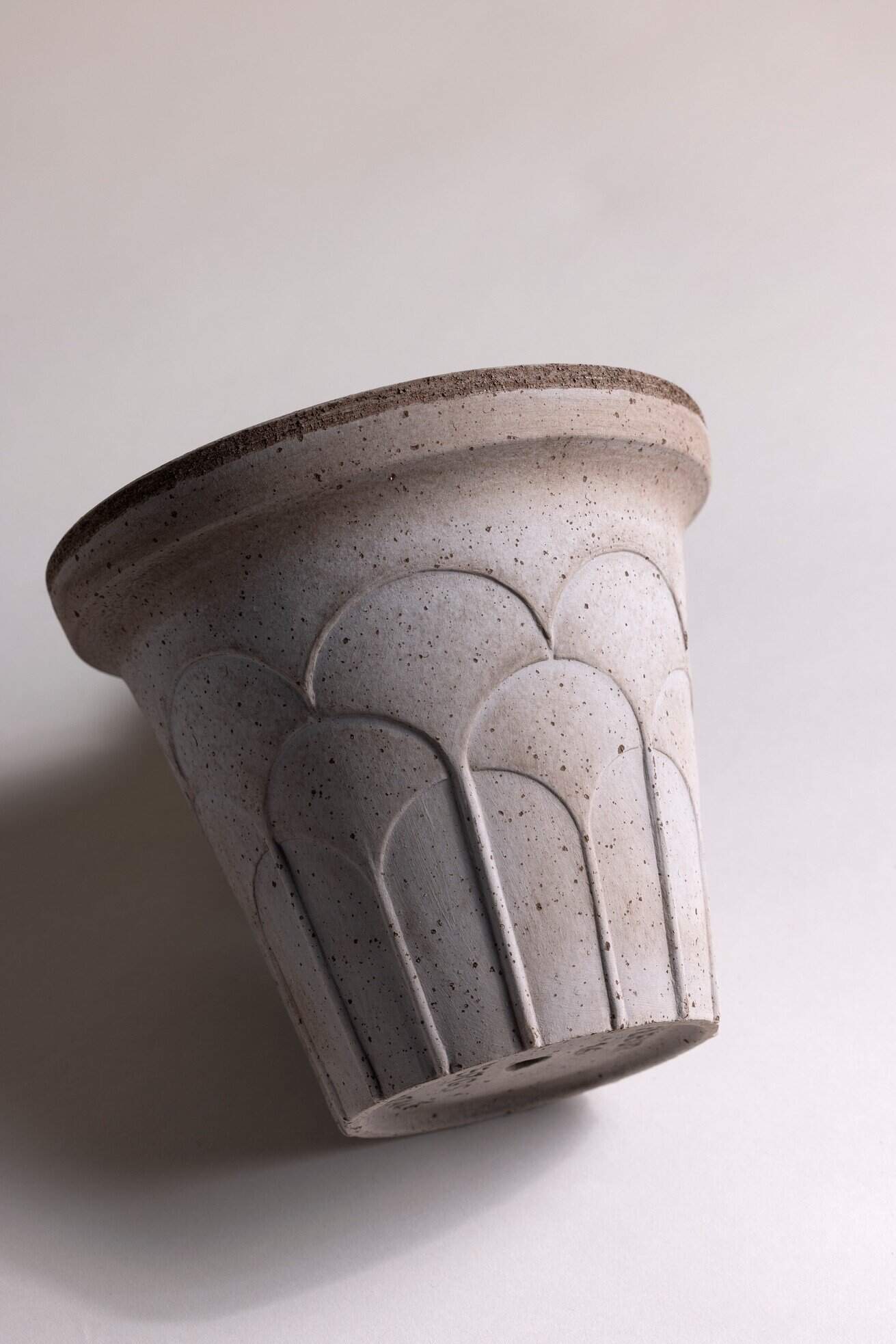 Bloemen zijn altijd een bron van inspiratie geweest – van de organische, vloeiende lijnen van de Art Nouveau tot de gestileerde patronen van de Art Deco. De Fleur-pot van Bergs Potter zet deze erfenis voort in een vorm die zowel zacht als architectonisch, klassiek als modern is. De subtiele reliëfs doen denken aan lelies, palmbladeren en irissen en versmelten tot een ritmisch patroon met een verfijnde, geometrische balans.