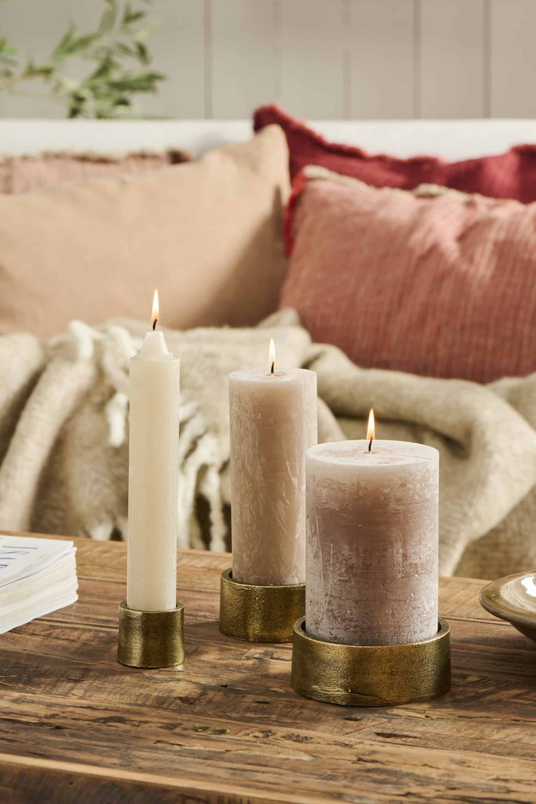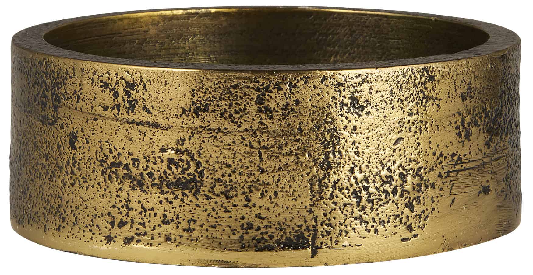 Deze decoratieve kaarsenhouder van IB Laursen is gemaakt van aluminium en heeft een goudkleurige afwerking en rustieke textuur. De kandelaar voegt warmte, karakter en een subtiele gloed toe aan je interieur. Perfect als decoratief detail op tafel, in een vitrine of waar je ook extra sfeer wilt creëren. Combineer deze kandelaar met dezelfde kandelaren in een ander formaat. Geschikt voor kaarsen met een doorsnede van maximaal 9,6 cm.
