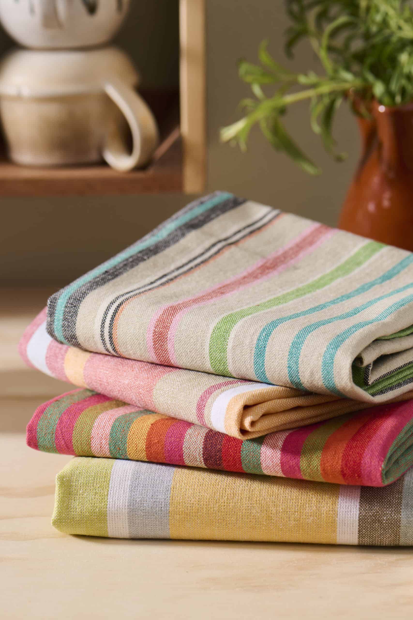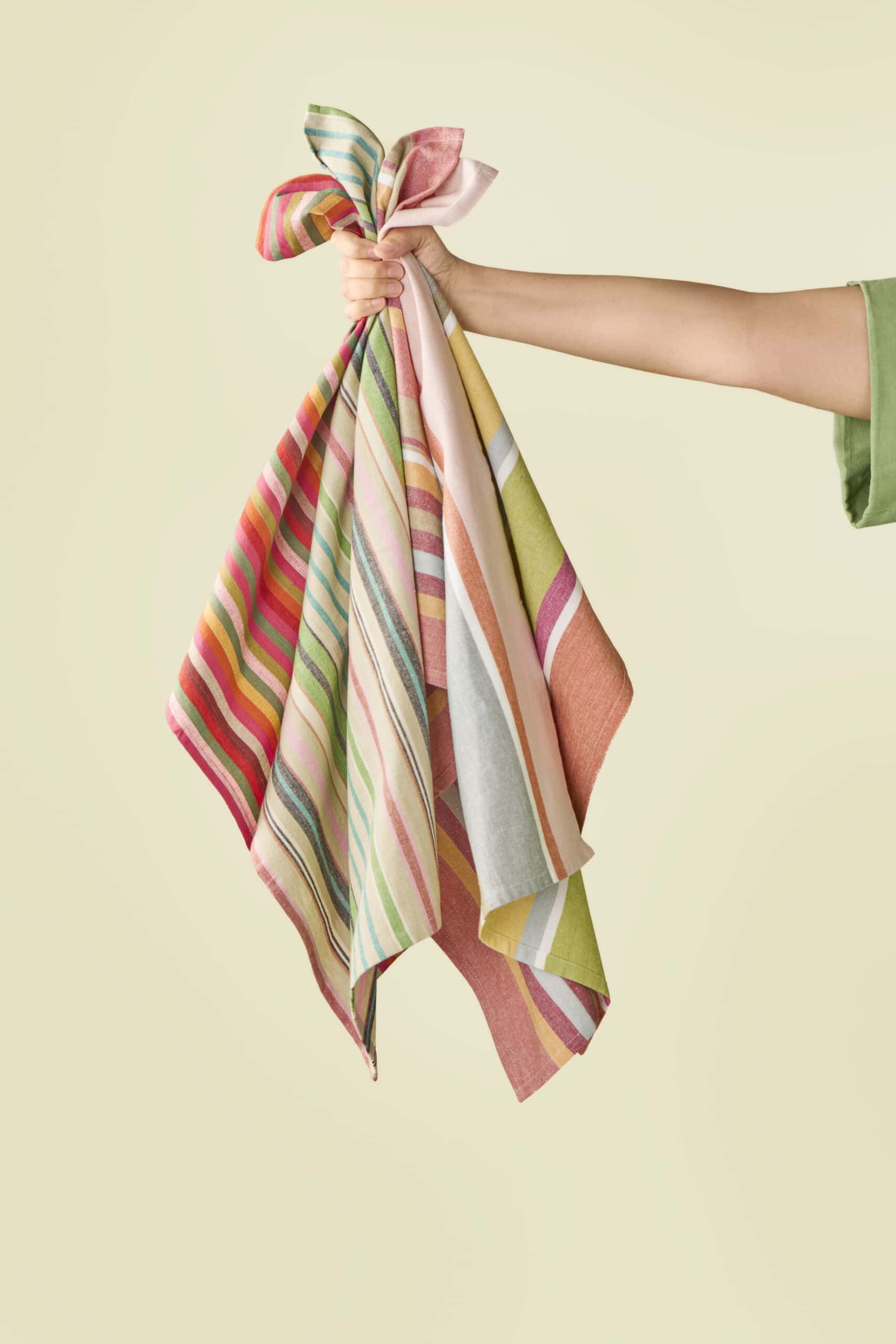 Set van 3 theedoeken van 100% katoen van IB Laursen. De kleurrijke strepen zorgen voor een frisse look en de duurzame stof heeft een hoog absorptievermogen. De bundel wordt geleverd met een decoratief katoenen lint – klaar om te gebruiken of cadeau te geven.