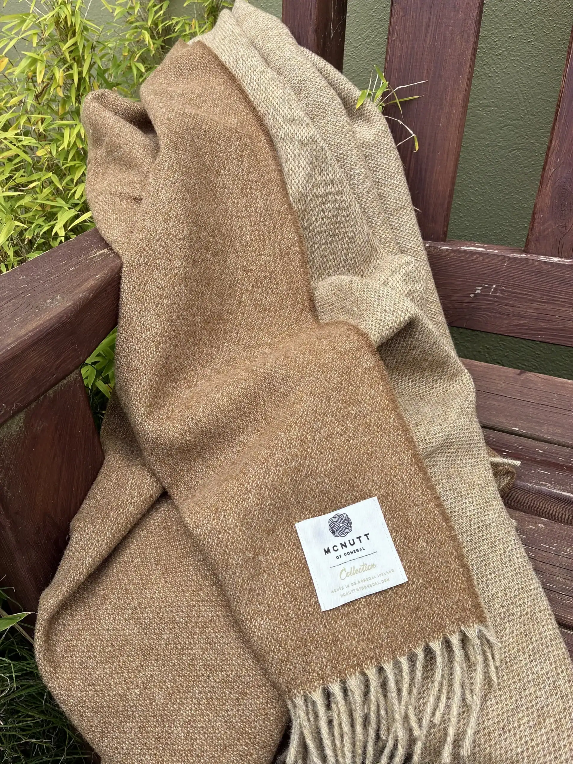 Omarm de rijke warmte van de herfst het hele jaar door met deze kastanjebruine plaid van McNutt of Donegal. De diepe, aardse kastanjebruine kant doet denken aan de ruige schoonheid van Ierse landschappen, terwijl de zachte, neutrale achterkant ingetogen veelzijdigheid biedt. Perfect om over een bank te draperen of als laagje over het voeteneind van je bed te leggen.