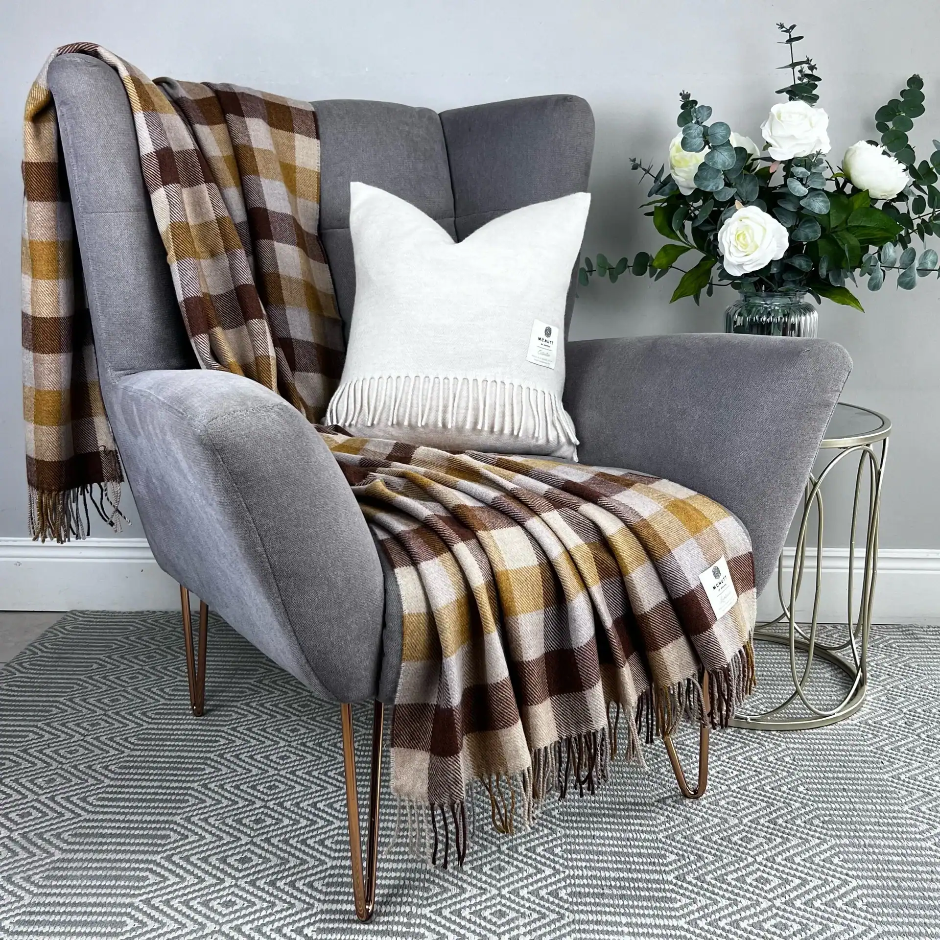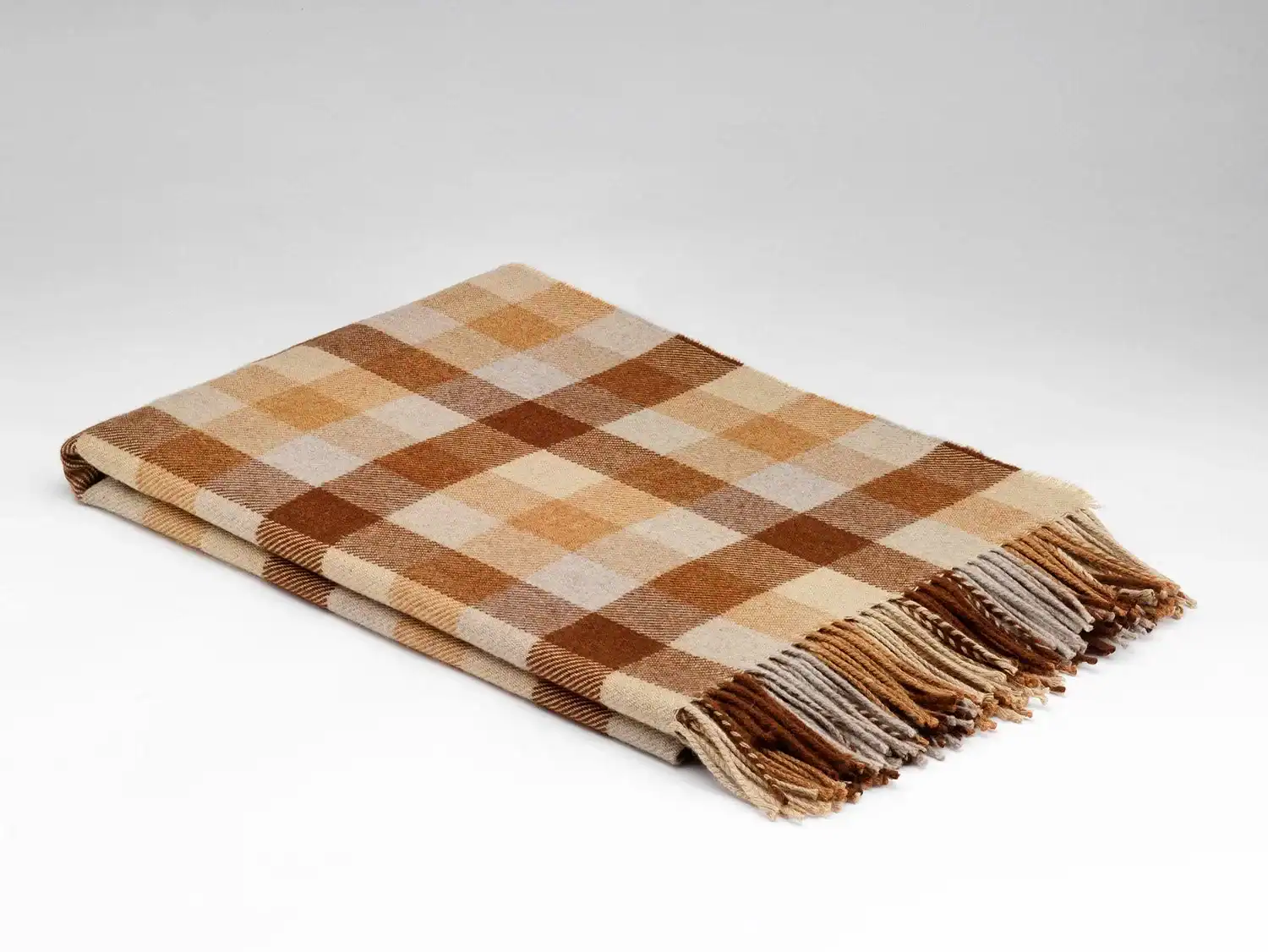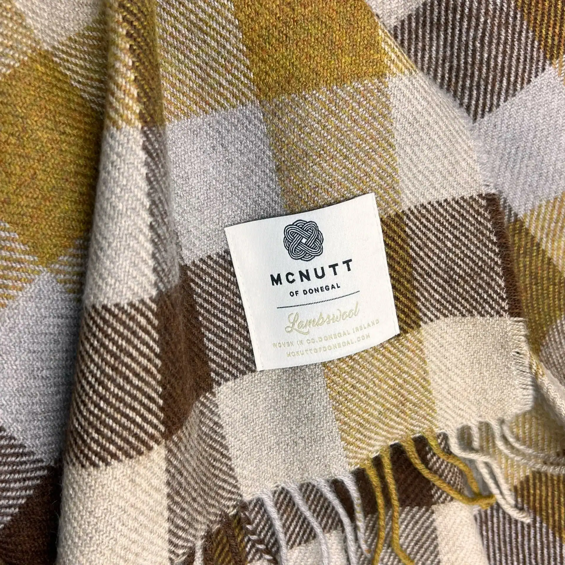 De Carmello plaid van McNutt of Donegal straalt warmte uit met zijn beige en crème tinten. Deze uitnodigende plaid is zacht en boterachtig als karamel en ideaal om woonruimtes gezelliger te maken.