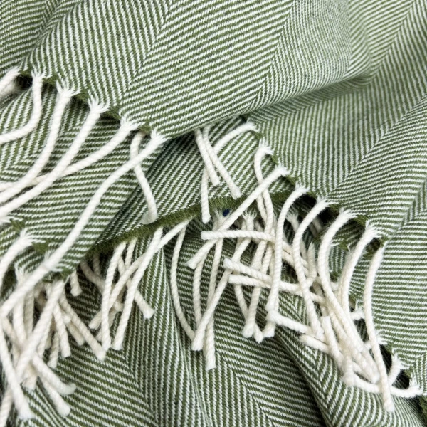 Een superzacht merino lamswollen plaid geweven in een heerlijk fris varengroen. Deze deken van McNutt of Donegal heeft een visgraatmotief.