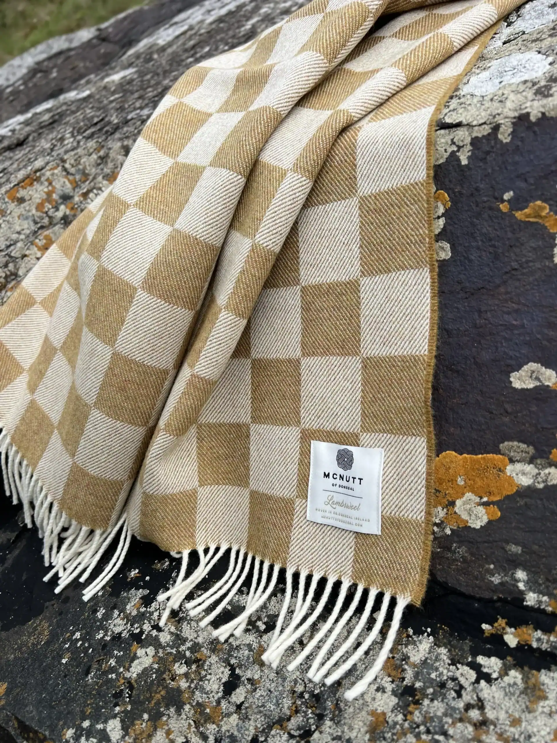 Deze lamswollen plaid van McNutt of Donegal, vernoemd naar de legendarische Ierse krijger Finn Mac Cumhaill, roept de kracht en stilte op van de landschappen waar hij ooit doorheen trok. Geweven in Donegal van superzachte merino lamswol, eren de aardse tinten en het tijdloze ontwerp oude verhalen, wilde schoonheid en de blijvende warmte van thuis.