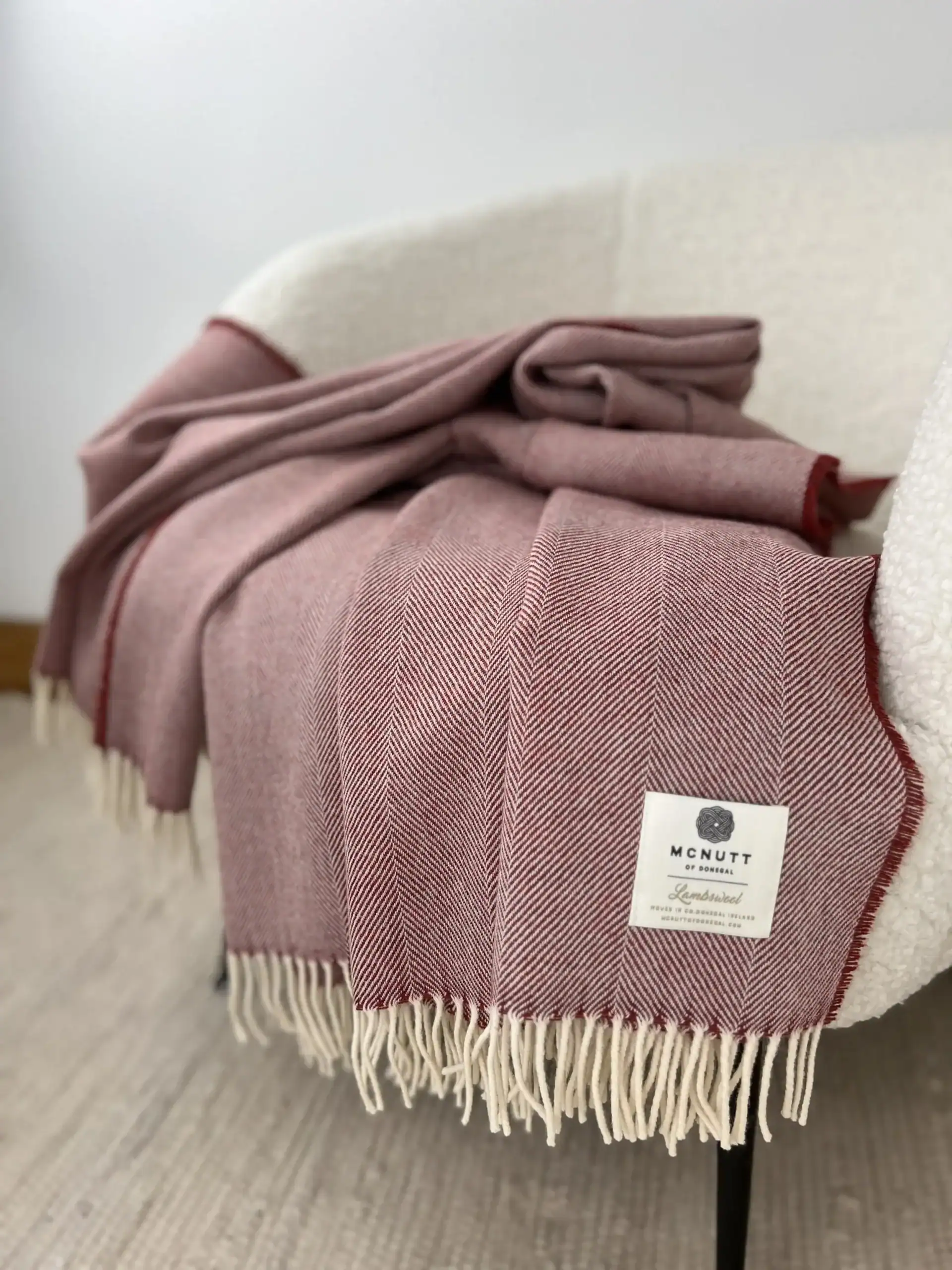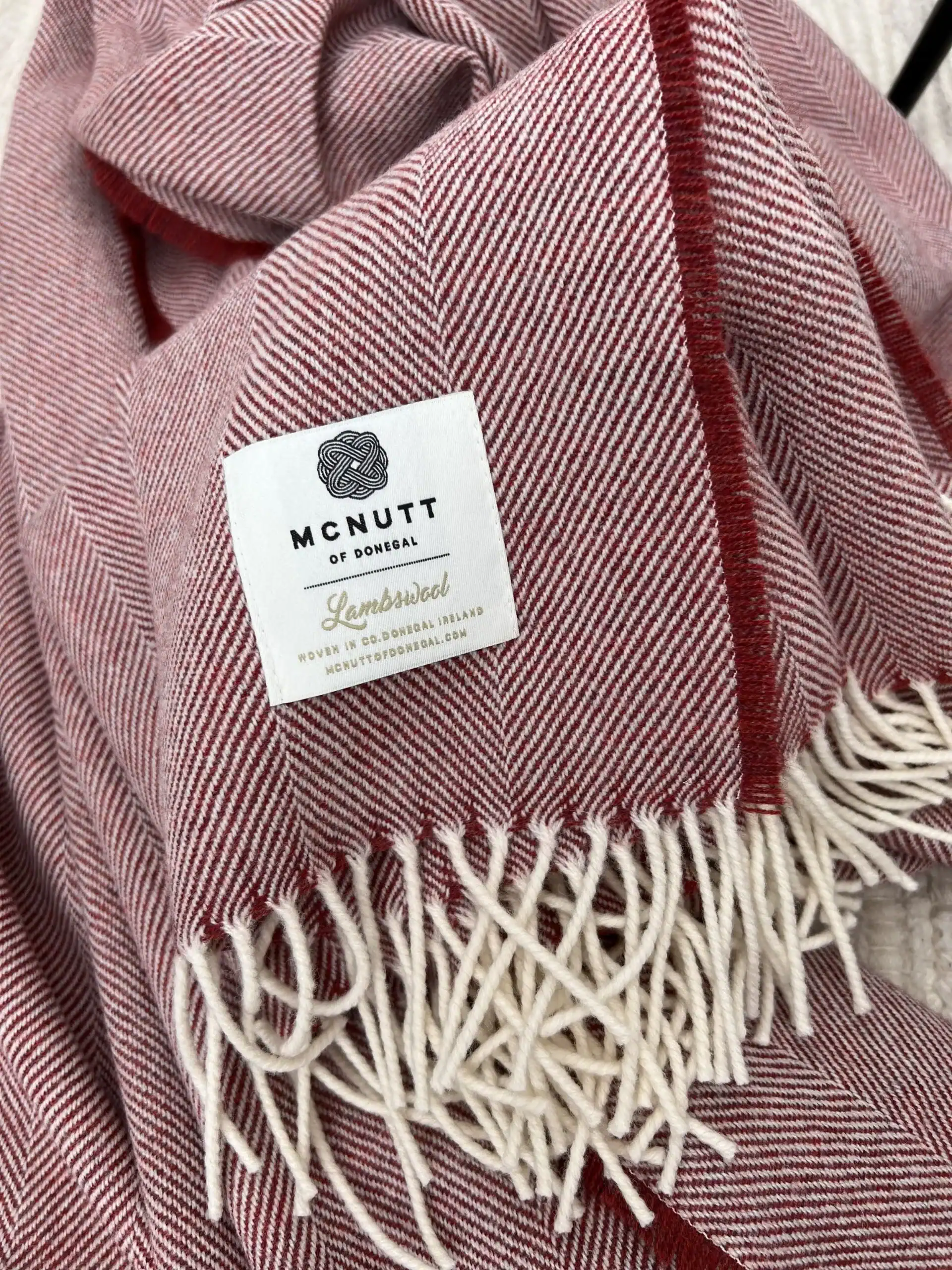 Deze merino lamswollen plaid van McNutt of Donegal heeft een visgraat patroon in de kleur tabasco.